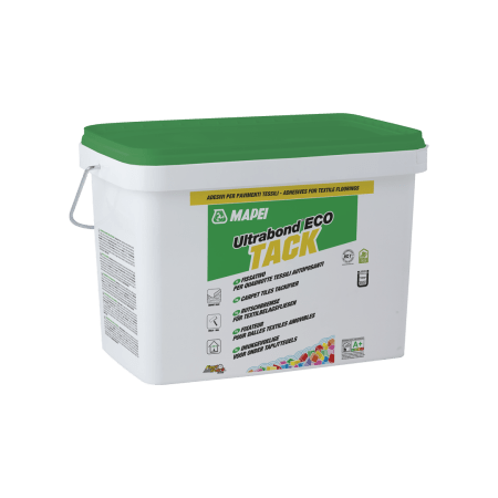 Mapei Ultrabond Eco Tack fustino 15 kgFissativo antiscivolo Mapei Ultrabond Eco Tack con elevata appiccicosità residua per quadrotte tessili autoposanti. Fustino da 15 kg